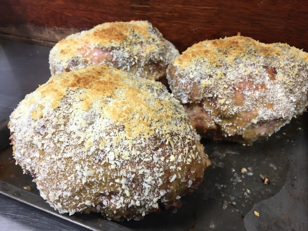 Chicken and mushroom, fried with wild garlic. Served with gravy, rice and home made pickled gherkins. Available mon-fri.